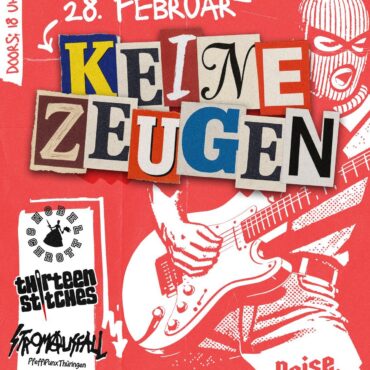 28 Feb. 2026 NoiseClub e.V. — 99189 Andisleben Keine Zeugen NobelschrottStromausfallThirteen Stitches Mehr Info